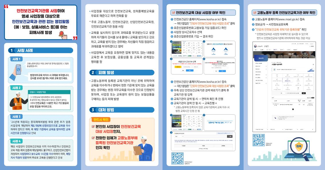 안전보건공단에서 제공하는 [안전보건교육기관 사칭 주의 안내] 리플릿을 게시하오니 업무에 참고하시기 바랍니다.